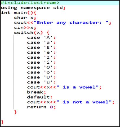 6. Write a C++ program to check whether a character is vowel or not using switch case.
