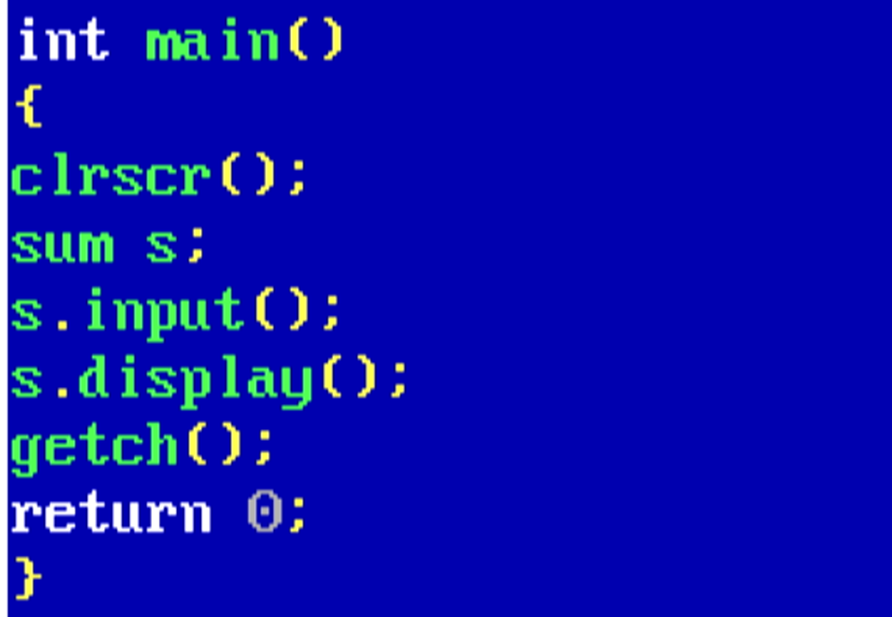 Takedata() function to accept values for rollno, name, eng, math, sc and invoke calc_tot() to calculate total. Showdata() function to display all the data members on the screen.