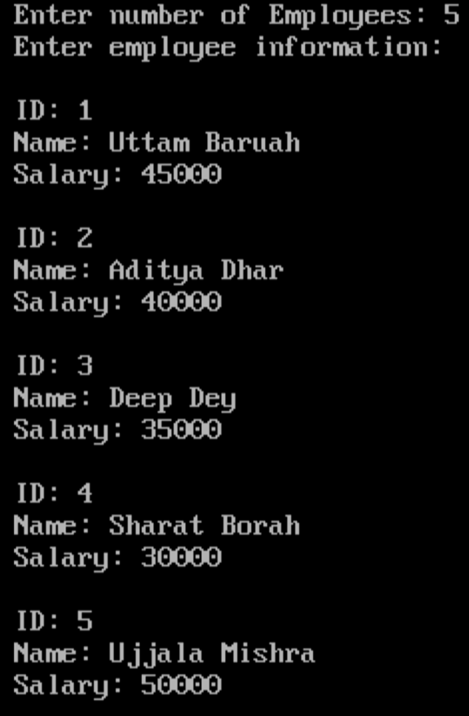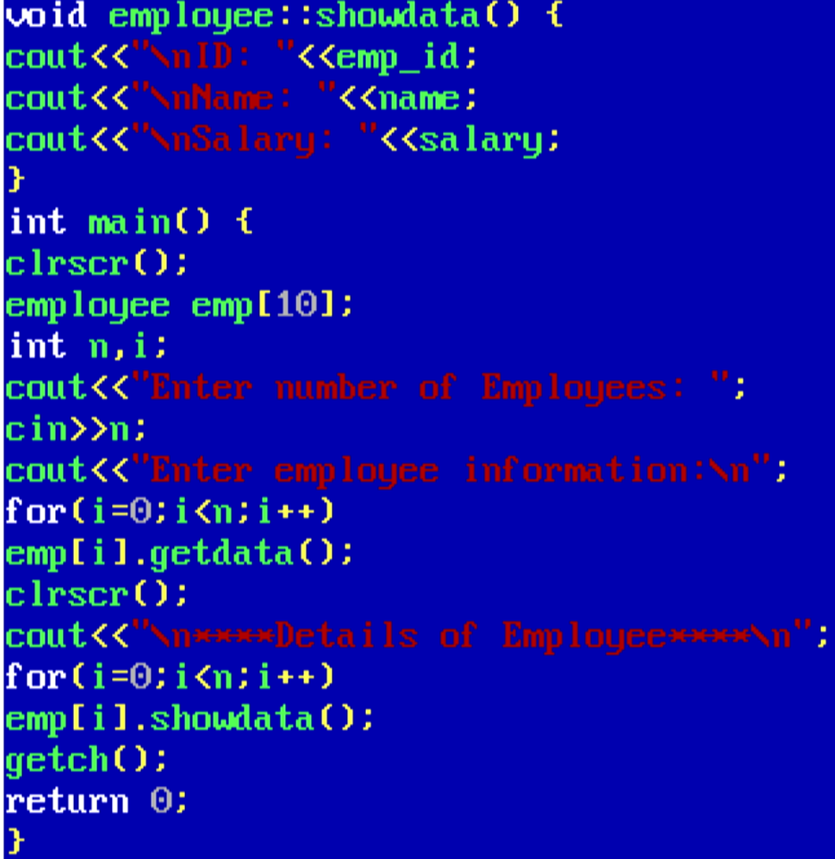 14. Write a C++ program to store data of 5 employee using array of objects.