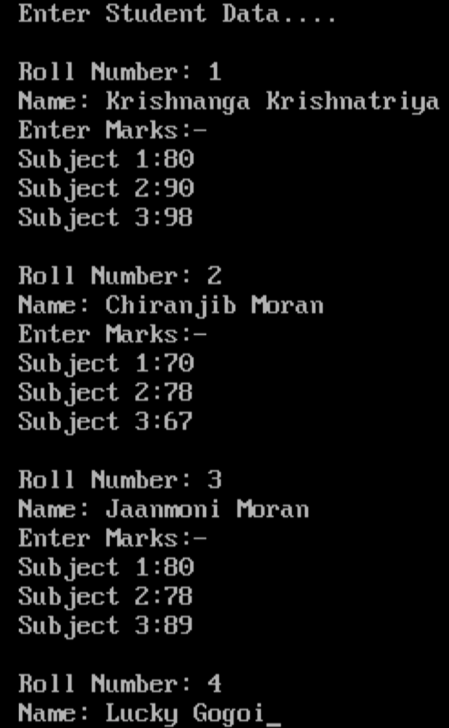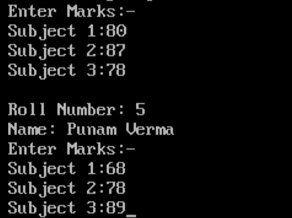 12. Write a C++ program to simulate result preparation system for a student. The data are given below.