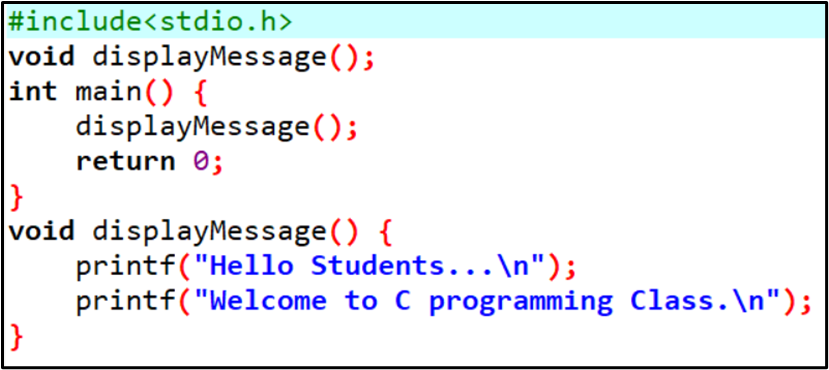 User-defined functions created by the programmer to perform specific tasks according to their program’s needs. User defined functions are defined by the user. C allows us to create functions according to our need. If there is no appropriate library function for specific requirement, we can create our own function to perform the desired operation. Once a function is defined, we can easily call and use the function whenever it requires.