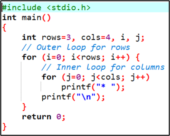 stdio.h: This is the standard input-output header in C. It contains functions for data input and output, such as printf() for output and scanf() for input.