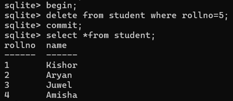 DELETE FROM student WHERE rollno=5;