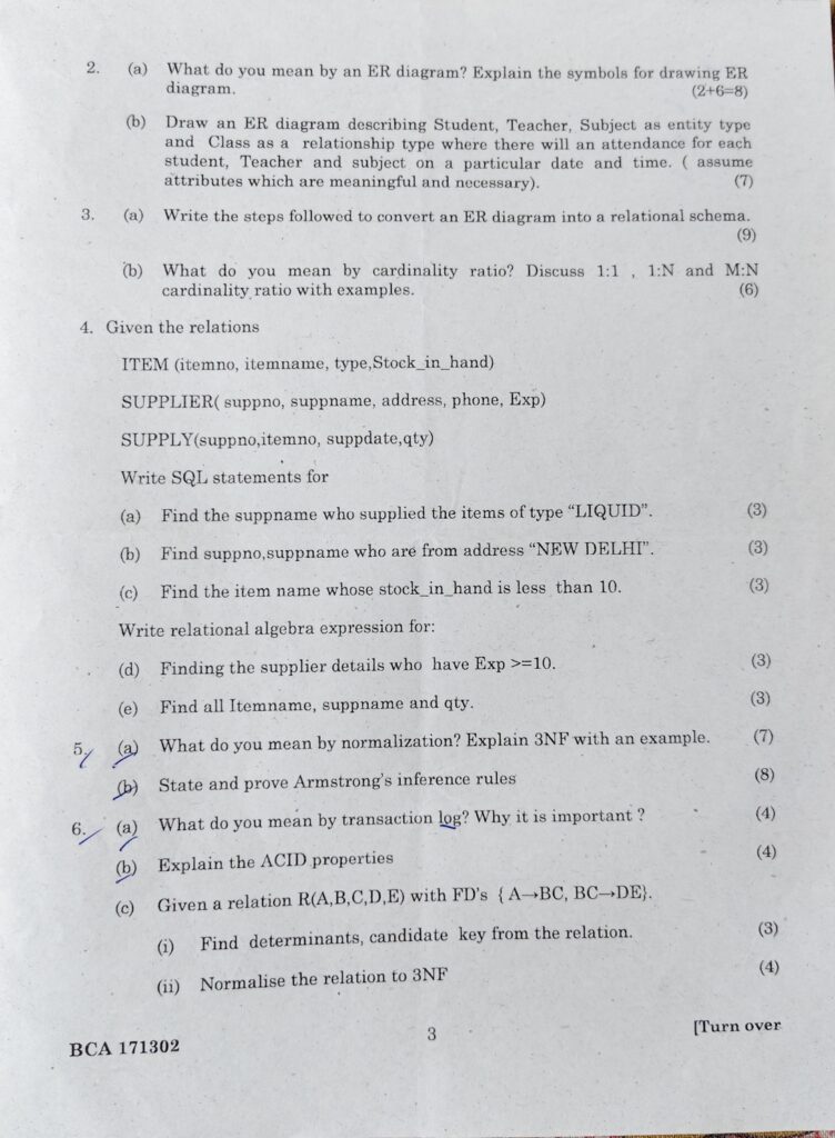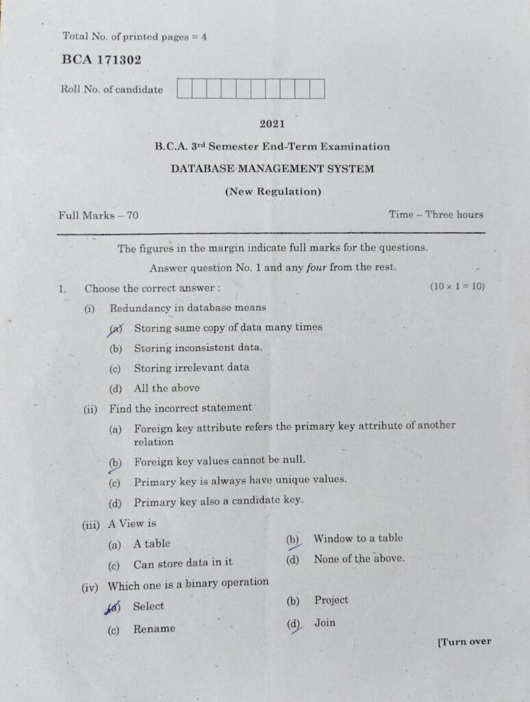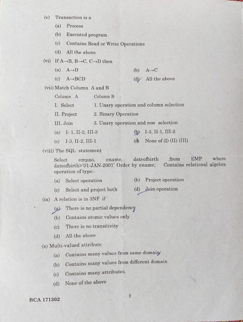 Database Management System Question Paper BCA| Question Paper Database Management System 2021 February 9, 2026August 10, 2023 by Eliza Begum Total Views: 675
