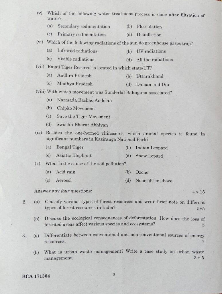 EVS Question Paper BCA 2024|Environmental Science Question Paper,BCA-2024 February 12, 2026December 24, 2024 by Eliza Begum Total Views: 320