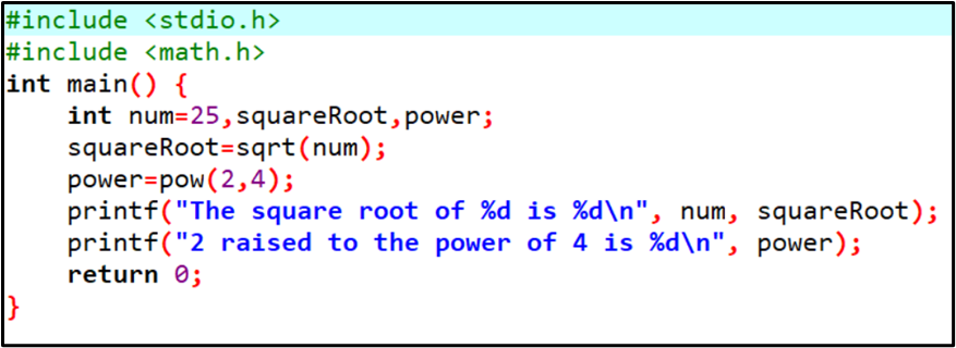 For example, printf() function is defined in <stdio.h> header file so in order to use the printf() function, we need to include the <stdio.h> header file in our program using #include<stdio.h>.