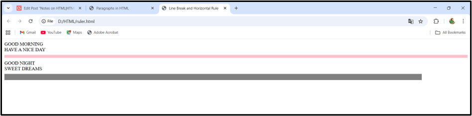 Body Section: This section defines the <BODY>…</BODY> elements, which contain the content of the document that we see on the screen.