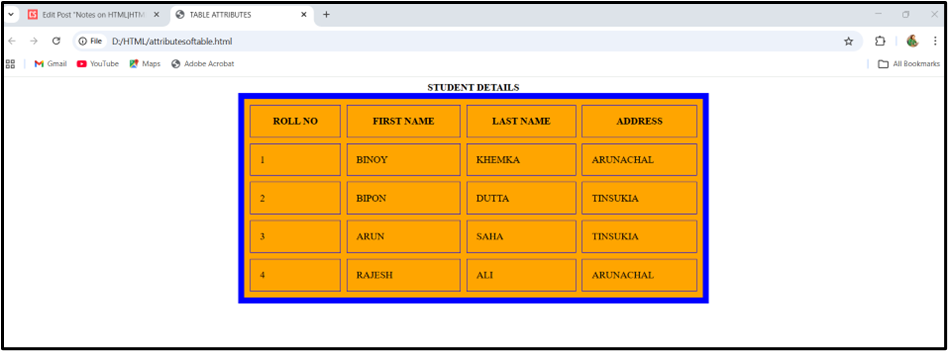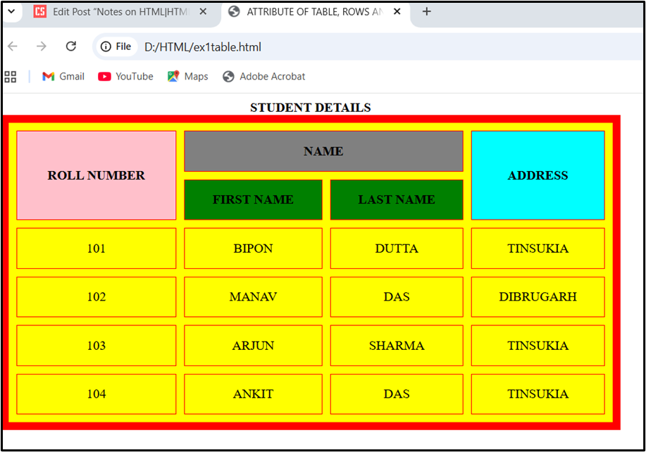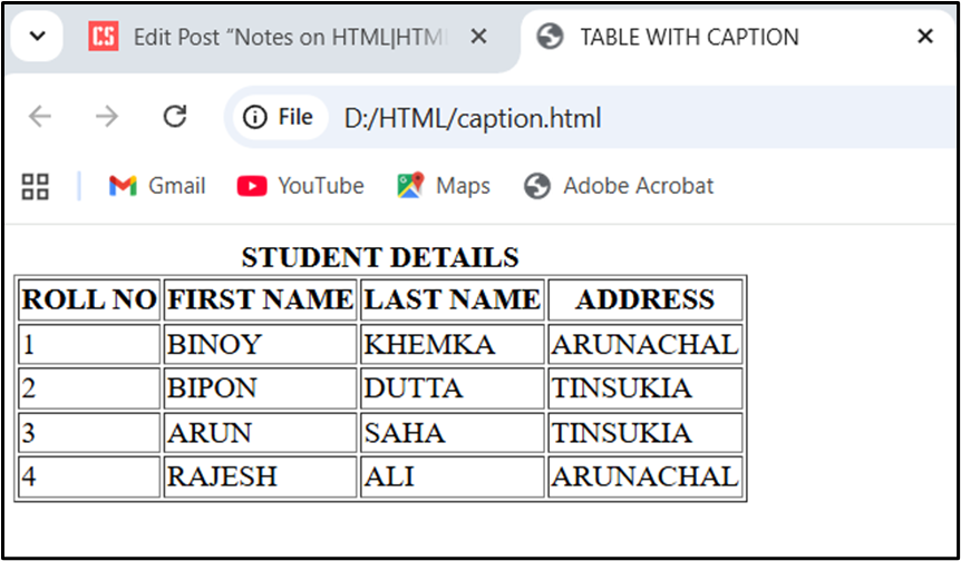 <TH WIDTH= “20 %”> ROLL NO</TH>