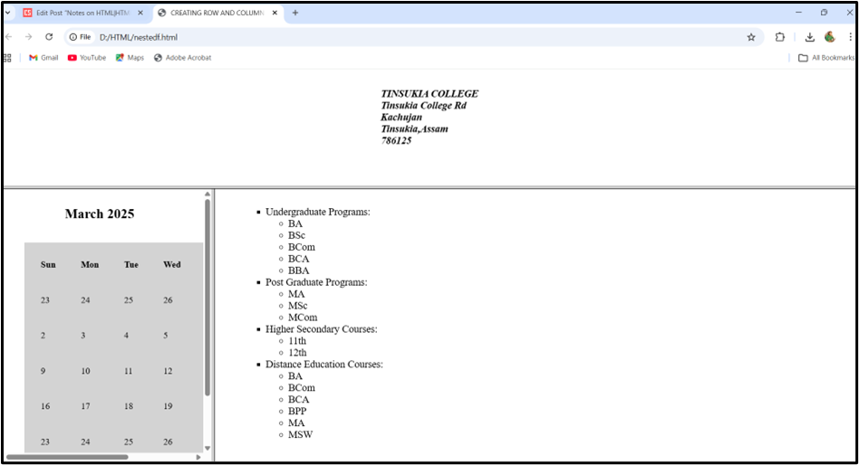 <H1 ALIGN=”CENTER”>TINSUKIA COLLEGE</H1>