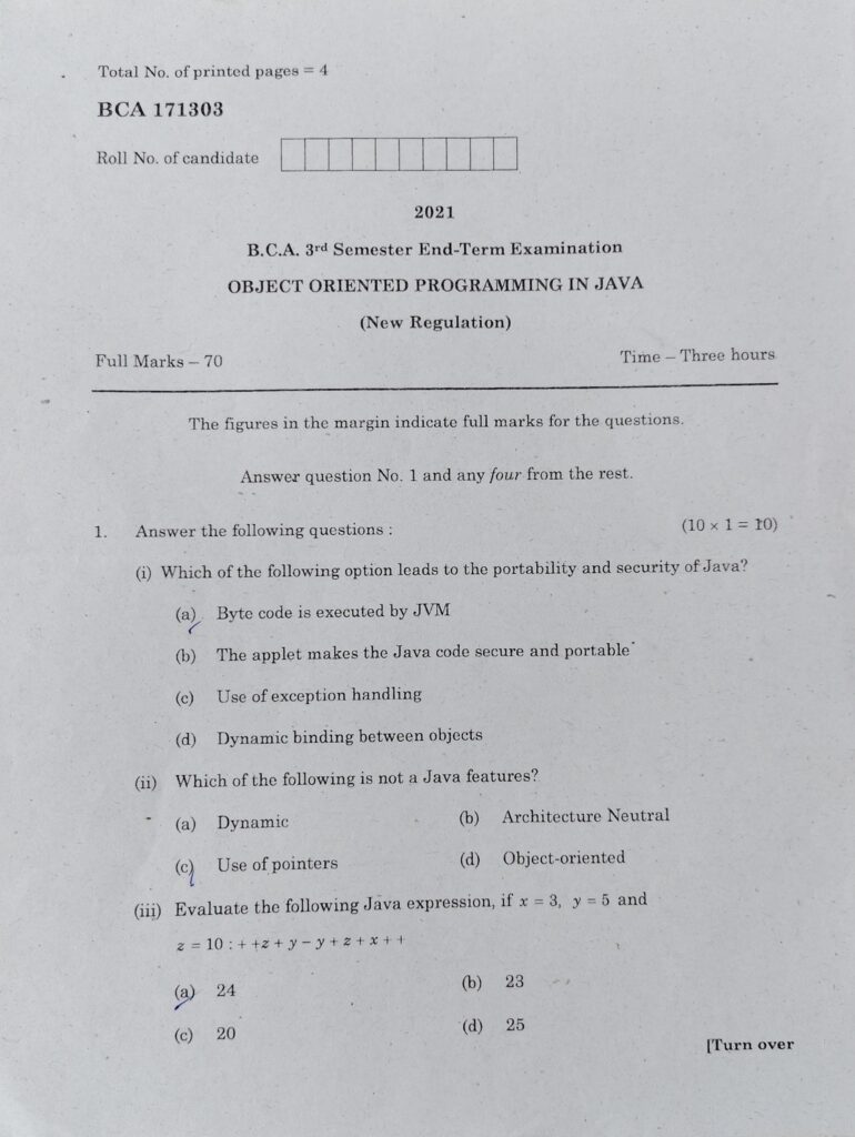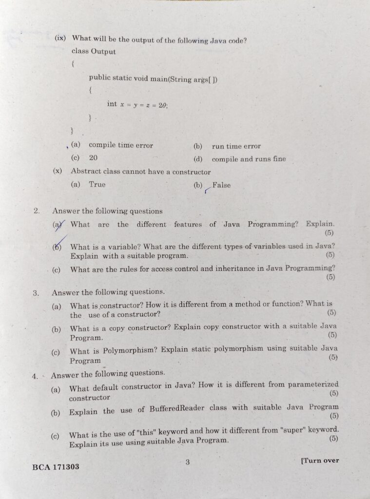 Question paper JAVA| Java Question Paper BCA|BCA Java Question Paper 2021 February 11, 2026August 10, 2023 by Eliza Begum Total Views: 475