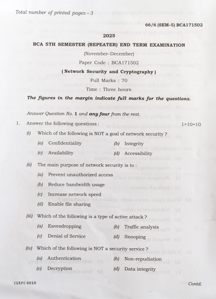 Network Security and Cryptography Question Paper 2025| BCA Question Paper Network Security February 5, 2026 by Eliza Begum Total Views: 12