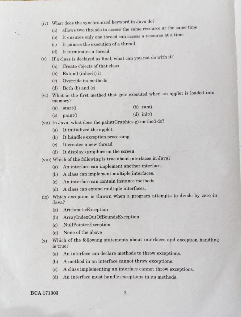 Question Paper JAVA| JAVA question Paper BCA|BCA JAVA question Paper-2024 February 11, 2026December 20, 2024 by Eliza Begum Total Views: 313