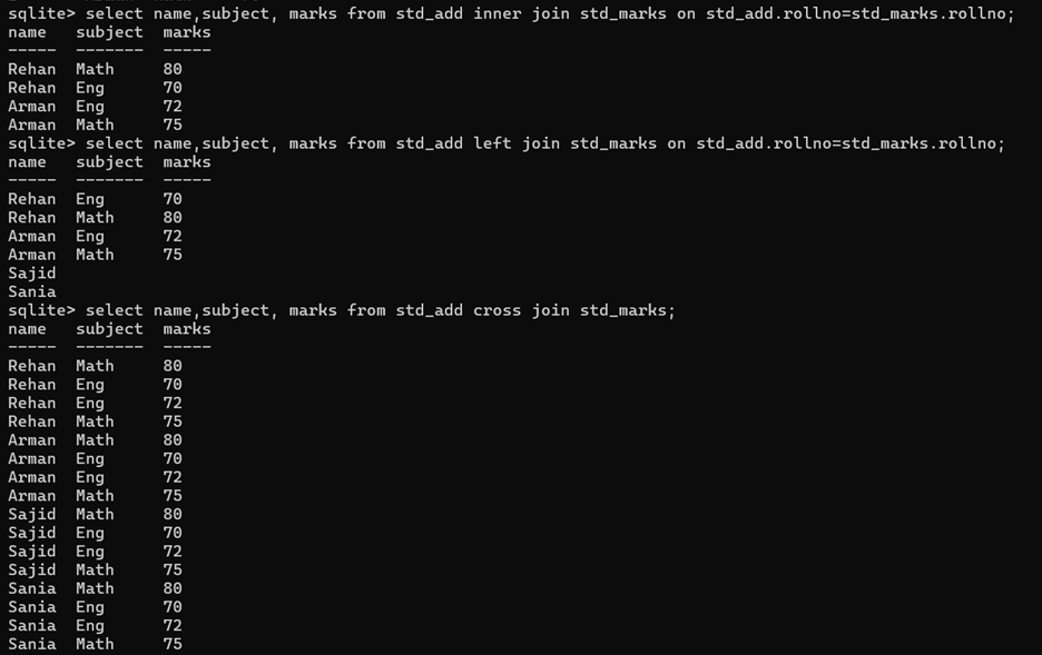 SQLite – JOIN Statements