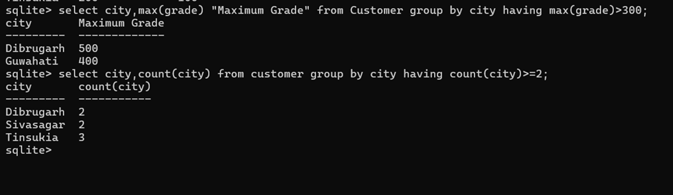 (iii) Find the highest and lowest grade of the customers in each city. Display city, maximum grade and minimum grade.