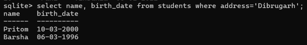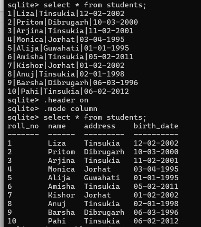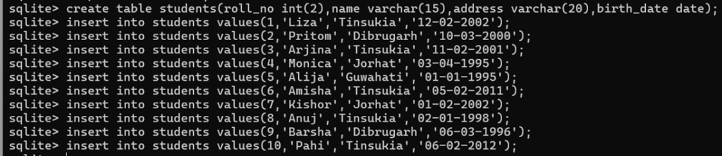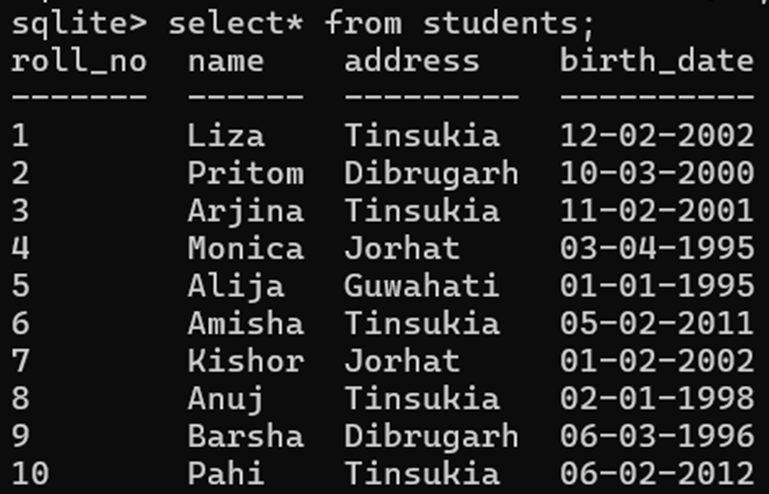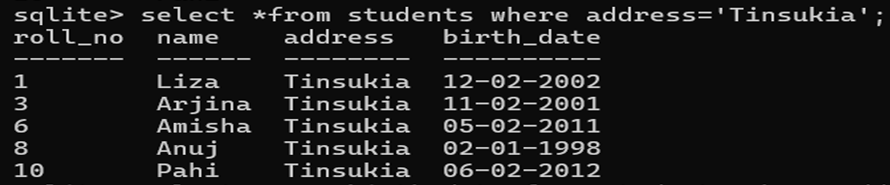 (iv) Display the details of students who are from ‘Tinsukia’.