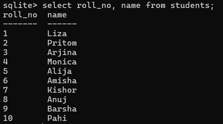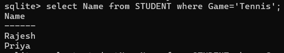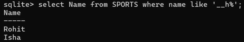 (vi) Display the name of the students having ‘h’ as the third character. Or, display the name of students whose name contains ‘h’ as the third alphabet.