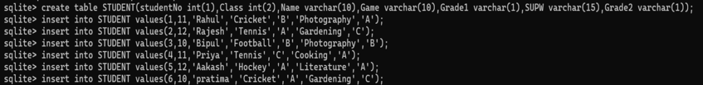 2. Write SQL commands for the following on the basis of given table STUDENT.