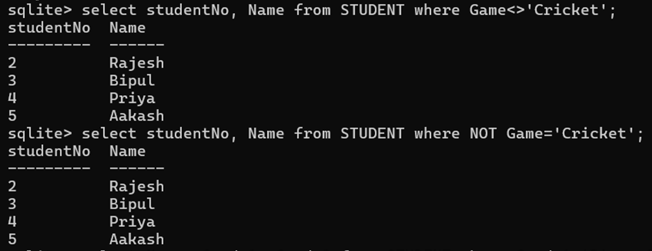 (iv) Display the StudentNo and name of those students who does not play cricket.