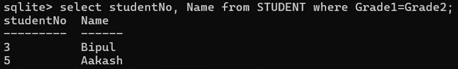 (ix) Display the StudentNo and name of those students who have got same grade in Grade1 and Grade2.