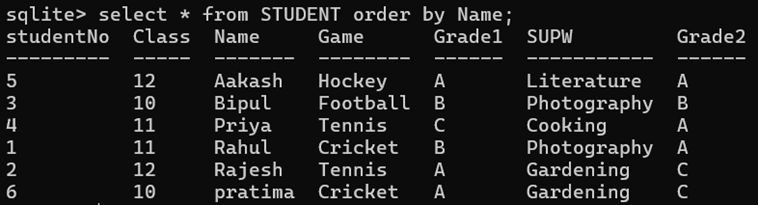 3. Write SQL commands for the following on the basis of table SPORTS.