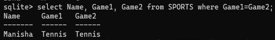 (ii) Display the name, game1 and game2 of those students who have same game for both game1 and game2.