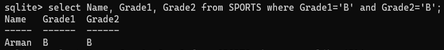 (iii) Display the name, grade1 and grade2 of the students who are getting grade ‘B’ in both Game1 and Game2.