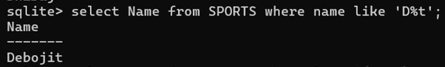(viii) Write an SQL query to list out the students whose name starts with ‘D’ and ends with ‘t’.