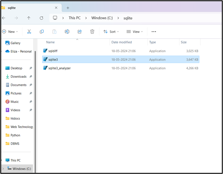 - Create a folder in C or D (wherever we want) for storing SQLite by expanding the zip file.